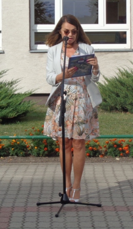 Na początku głos zabrała pani dyrektor Małgorzata Lewandowska, która w swoim wystąpieniu przedstawiła wszystkim zgromadzonym informacje dotyczące przeprowadzonych prac remontowych w obu budynkach szkoły. Pani Dyrektor poinformowała zebranych, że w bieżącym roku szkolnym naukę rozpoczynają uczniowie w 22 oddziałach, w klasach 0- 8. Następnie powitała najmłodszych uczniów z oddziałów przedszkolnych i klas pierwszych oraz przedstawiła wychowawców poszczególnych klas. Słowa podziękowania skierowała do pań ustępujących z funkcji wicedyrektora szkoły: p. H. Trojanowskiej – Białczak i p. I. Perlińskiej. Jednocześnie poinformowała wszystkich zebranych o powołaniu na swoich zastępców pań: Anicety Banaszak i p. Małgorzaty Pawlaczyk.
