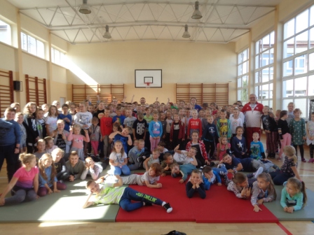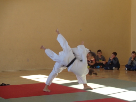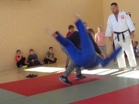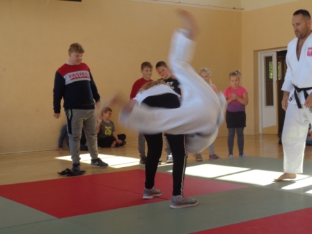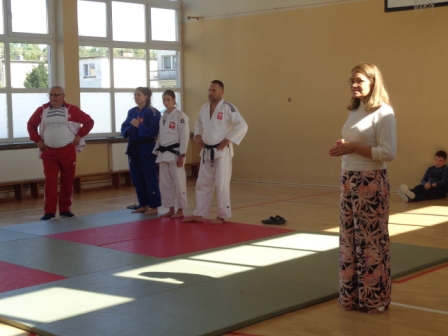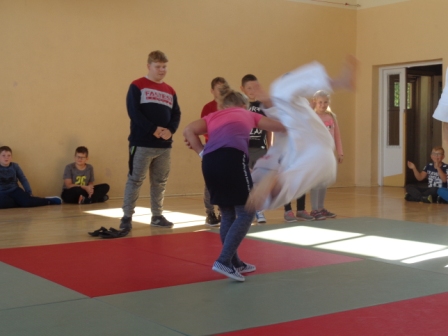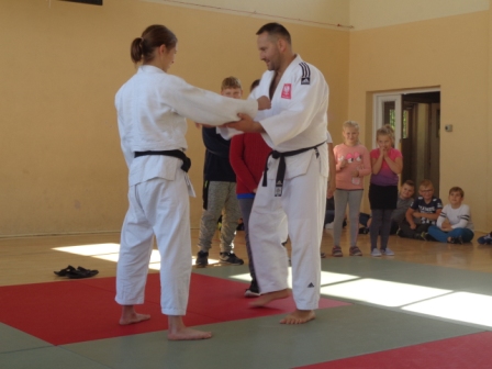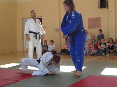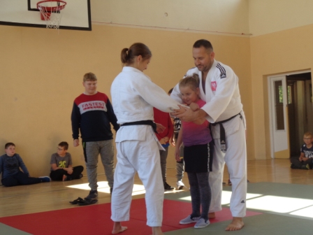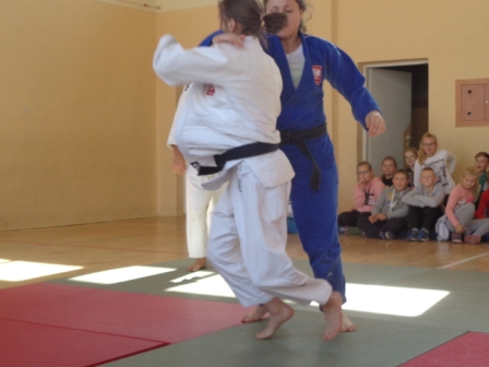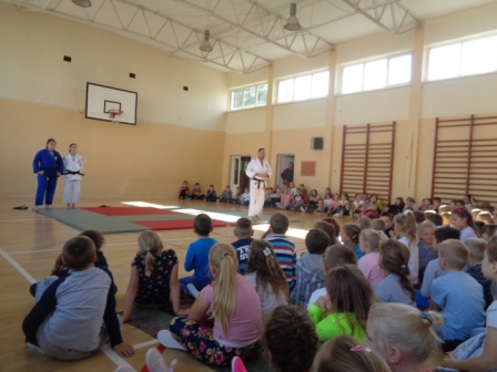 Podopieczne trenera Józefa Jopka odnoszą wiele sukcesów. Uczniowie mogli w ich wykonaniu obejrzeć kilka technik judo. Na koniec chętni uczniowie wzięli udział w ćwiczeniach i spróbowali przez moment być judokiem.