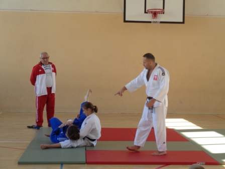 Na początku Tomasz Jopek – trener kadry narodowej oraz klubów UKS 6 Piła, Kaczory, Trzcianka, Białośliwie, Łobżenica - zapoznał uczniów z japońską sztuką walki wręcz - judo. Potem przedstawił zawodniczki, które wraz z ojcem (Józefem Jopkiem) trenuje: Paulę Kułagę i Katarzynę Wiszniewską.