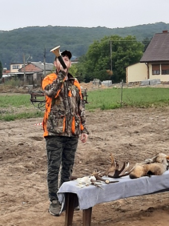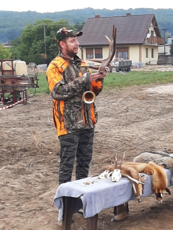 Dużą atrakcją spotkania była wizyta pana myśliwego - Dominika Regulskiego, który omówił różnorodną pracę myśliwego i pokazał trofea myśliwskie. Dzięki niemu dzieci dowiedziały się i z bliska zobaczyły, jak wygląda poroże jelenia, łosia, sarny, po czym można je rozpoznać i kiedy zwierzęta je gubią. Dzieci mogły dotknąć skóry jenota, lisa i kuny leśnej oraz zobaczyć kły dzika. Na koniec pan myśliwy przedstawił fragment ceremoniału łowieckiego na polowaniach zbiorowych i zagrał sygnał "powitania" na rogu myśliwskim. Później każdy mógł spróbować swoich sił, jako sygnalista – trębacz. Zadanie to jednak okazało się trudne do wykonania i tylko nieliczni potrafili wydobyć dźwięk z tego instrumentu.