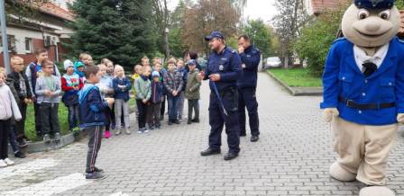 23 września uczniowie z klasy 3a i 3b na zaproszenie dzielnicowego Andrzeja Ziarnika udali się do Komisariatu Policji w Wyrzysku. Dzieci poznały nazwy wydziałów, spotkały się z komendantem oraz mogły sprawdzić sposób pobierania odcisków palców. Policjanci sprawdzili znajomość 5 zasad przechodzenia przez jezdnię. W ćwiczeniach pomagał uczniom sierżant Pyrek. Uczniowie mieli okazję wykazać się znajomością znaków drogowych. Omówiono również zagrożenia ze strony dorosłych. Na koniec dzieci poznały radiowóz oraz różne sygnały dźwiękowe i świetlne.
