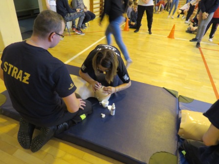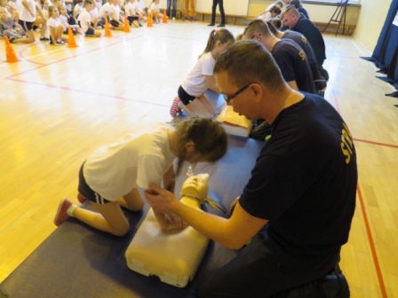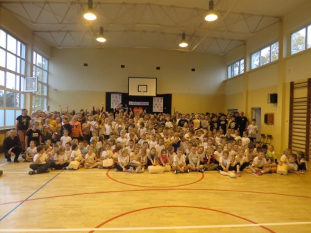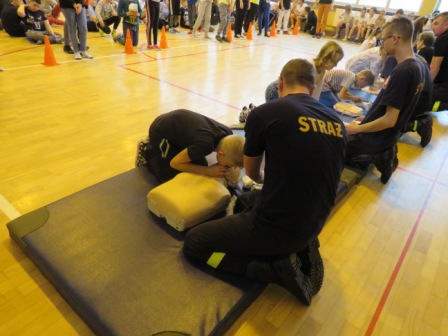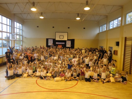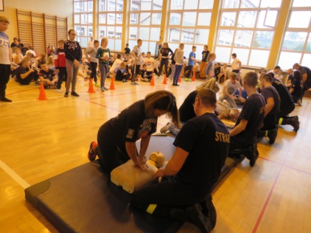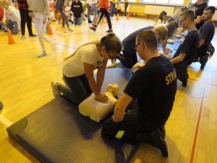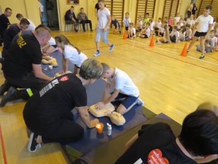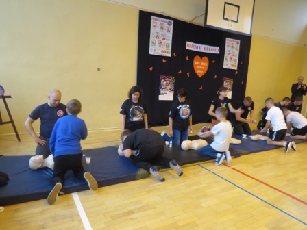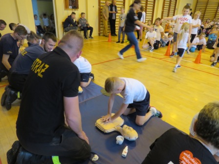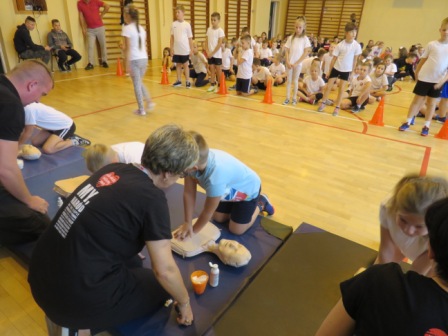 16 października 2109 r. w godz. 12.00-12.30, 412 osób z naszej szkoły (uczniów z klas I-VIII, nauczycieli i strażaków) prowadziło na 8 fantomach uciśnięcia klatki piersiowej i wdechy ratownicze. Próbowaliśmy pobić rekord w jednoczesnym wykonywaniu resuscytacji krążeniowo -oddechowej. Z inicjatywy Fundacji Wielkiej Orkiestry Świątecznej Pomocy , w Dzień Przywracania Akcji Serca w całej Polsce podejmowana jest próba ustanowienia rekordu w jak największej liczbie osób prowadzących jednocześnie RKO. Nasi uczniowie zdobyli tę umiejętność w szkole, podczas zajęć prowadzonych w ramach programu Ratujemy i Uczymy Ratować. Niestety nie udało się pobić naszego szkolnego zeszłorocznego rekordu ( 431 osób), ale cieszymy się z każdej prawidłowo wykonanej resuscytacji , zaangażowania i właściwego zachowania naszych uczniów. Gratulujemy!