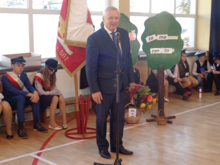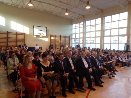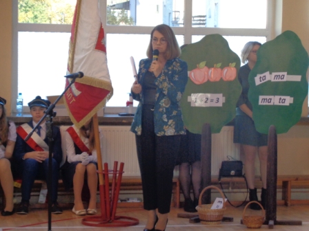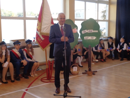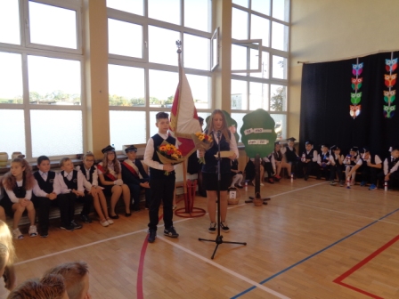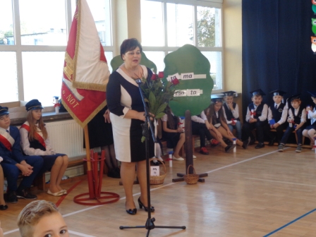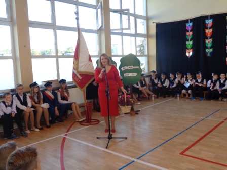Dnia 14 października 2019 roku odbyła się w naszej szkole uroczystość Ślubowania uczniów klas pierwszych. Jest to bardzo ważne wydarzenie nie tylko dla najmłodszych, ale również dla ich rodziców. Na uroczystość przybyli zaproszeni goście: zastępca Burmistrza Wyrzyska Jacek Wiśniewski, radni Rady Miejskiej: Tomasz Bogdański, Leszek Matuszewski, Stefan Wełniak, sołtys Osieka Ewa Pawlaczyk, ksiądz proboszcz Adam Przyborski, przewodnicząca Rady Rodziców Marta Wika, dyrekcja szkoły, nauczyciele, rodzice uczniów klas pierwszych oraz przedstawiciele społeczności szkolnej. Wszystkich zebranych, w pięknie przystrojonej sali powitała Pani dyrektor Małgorzata Lewandowska podczas swojego przemówienia.