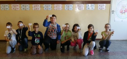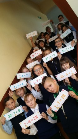 Koordynatorzy zapoznali uczniów z historią i celem akcji. Następnie jeden z nauczycielipokazywał uczniom pojedyncze karty zawierające zadania dotyczące tabliczki mnożenia. Wszyscychórem podawali odpowiednie wyniki.