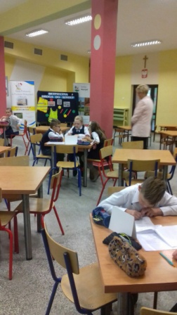 Naszą szkołę reprezentowali: Maja Machnik, Marta Rerek i Oliwier Olszanowski z klasy IIIa. Uczestnicy tworzyli trzyosobową grupę, która musiała rozwiązać test o ruchu drogowym, ułożyć puzzle – znaki drogowe i wykazać się wiedzą na temat udzielania pierwszej pomocy. Nasi uczniowie świetnie poradzili sobie z zadaniami,lecz zabrakło im szybkości, która również była punktowana. Ostatecznie zajęli IV miejsce.