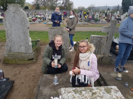 ,,Zapomniane groby" to druga już edycja przedsięwzięcia zainicjowanego przez Szkolne Koło Wolontariatu. Nowi członkowie - uczniowie klas siódmych i ósmych - drugiego listopada, wraz z panią Magdaleną Mrotek – Matuszewską oraz Ks. Patrykiem Stybą odwiedzili cmentarz parafialny w Osieku nad Notecią. Wzięli oni udział w akcji, której celem było odnalezienie opuszczonych, zaniedbanych i zapomnianych grobów. Wolontariusze przechadzając się po kolejnych alejach i sektorach zauważyli kilkanaście takich mogił, na których położyli znicz oraz posprzątali teren wokół nich.