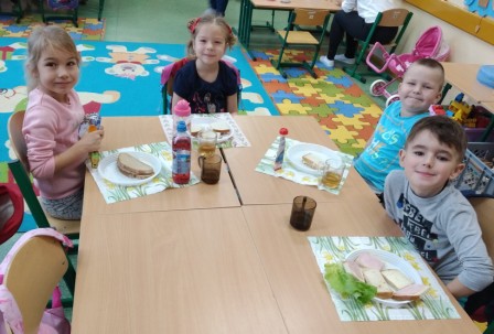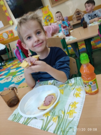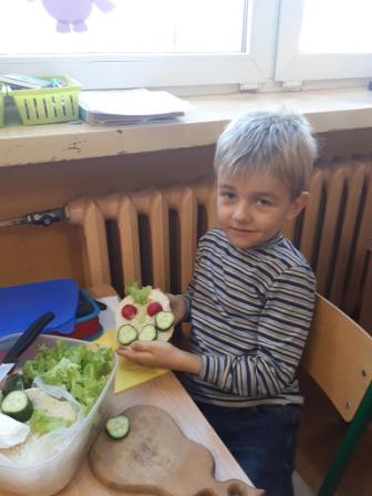 Śniadanie to najważniejszy posiłek dnia. Dzięki niemu dzieci mają energię do nauki, lepiej koncentrują się podczas zajęć i mają siłę do zabawy. Dnia 20 listopada dzieci z oddziału przedszkolnego oraz zerówki przygotowywały „Wesołe kanapki”. Dzieci pod okiem wychowawców wykonywały zdrowe i kolorowe kanapki. Wszyscy byli bardzo zaangażowani i wykazali się dużą fantazją i pomysłowością przy komponowaniu posiłku. Przyjemnie było patrzeć jak uczniowie z apetytem pałaszują własnoręcznie przygotowane śniadanie, jednocześnie ucząc się zasad zdrowego odżywania.