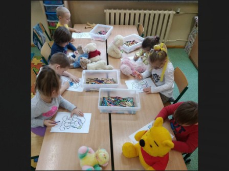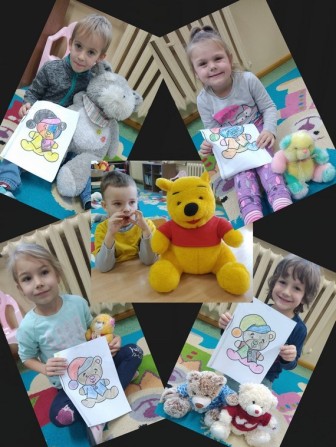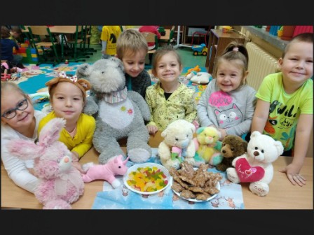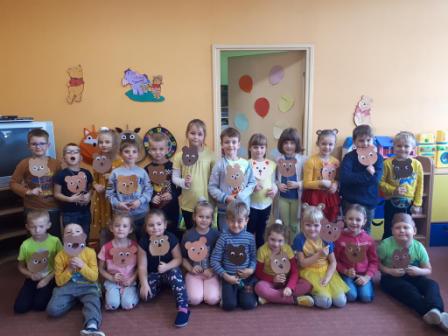 Tego dnia dzieci przyszły do przedszkola ze swoimi ulubionymi i kochanymi pluszakami. Dzieci, opowiadały o swoich maskotkach, słuchały czytanych przez panie fragmentów książek o niedźwiadkach, bawiły się w starego niedźwiedzia oraz tańczyły z misiami w rytm piosenek. Nie zabrakło również prac plastycznych dotyczących misiów. Miłym akcentem był zorganizowany przez rodziców słodki poczęstunek – żelki i pierniczki w kształcie misia. Ten dzień wywołał u dzieci wiele uśmiechów i radości.