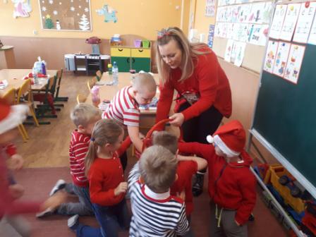 Tego dnia przedszkolaki stroiły choinkę i dekorowały swoje sale. Dzieci niecierpliwie wyczekiwały prezentów od Świętego Mikołaja. Jak co roku dzieci nie zawiodły się i wszystkie przedszkolaki zostały obdarowane upominkiem.
