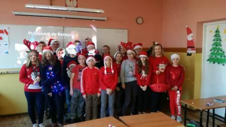 Uczniowie również uczcili ten dzień szczególnie, zakładając mikołajkowe czapki, rogi renifera, zimowe swetry. Z głośników popłynęły dźwięki „Last Christmas” – najsłynniejszej świątecznej piosenki a klasy i korytarze zostały przyozdobione choinkami, śnieżynkami, dzięki czemu rozpoczęliśmy najpiękniejszy okres w roku – okres przygotowań do Świąt Bożego Narodzenia.