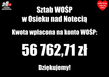 Dziękujemy Wszystkim za przepiękny 28. Finał WOŚP i przepiękny wynik zbiórki – 56 762,71PLN – to absolutny i niespodziewany rekord! Dziękujemy za każde dobre słowo, wspólne spędzone chwile i zaufanie, którym po raz kolejny nas obdarzyliście! Ogromnie dziękujemy wszystkim naszym sponsorom, partnerom, organizatorom atrakcji, wolontariuszom, - bez Was nic!