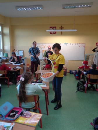 3) zbiórka pieniężna, w której uczestniczyli członkowie Szkolnego Koła Wolontariatu - zebrano 1239,99 zł