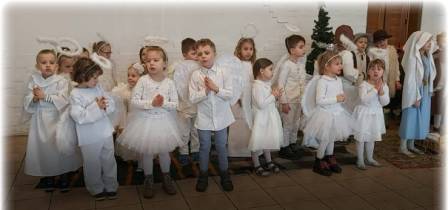 22 stycznia w restauracji „Słoneczna” odbyła się ta wspaniała impreza. Dzieci z młodszego oddziału przedszkolnego oraz zerówki wraz ze swoimi wychowawczyniami przygotowały piękny program artystyczny. Wspólne przygotowania były doskonałą okazją do zintegrowania dzieci oraz nauki wzajemnej współpracy. W trakcie uroczystości babcie i dziadkowie mogli podziwiać swoje pociechy w „Jasełkach”. Mali artyści z przejęciem odtwarzali swoje role, a starannie przygotowane przez rodziców stroje zachwyciły wszystkich. Pomimo tremy związanej w występem przed ponad 100 osobową widownią, dzieci doskonale poradziły sobie z realizacją powierzonych im ról. Następnie obdarowały swoich ukochanych gości własnoręcznie przygotowanymi upominkami. Był to dzień niezwykły, pełen uśmiechów, wzruszeń, łez i radości.