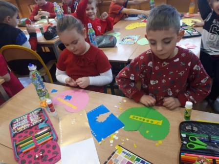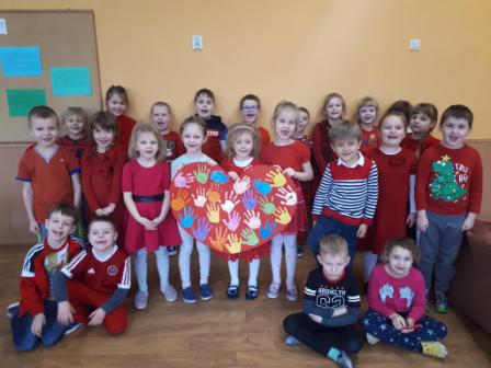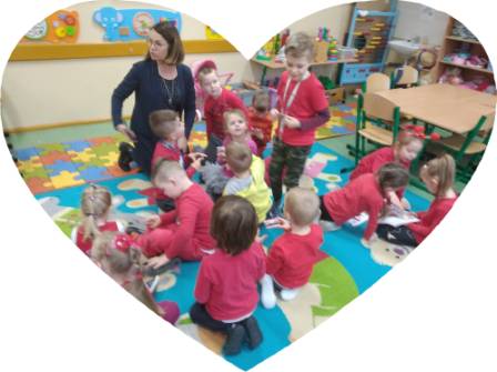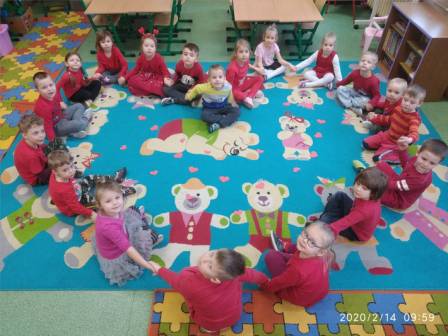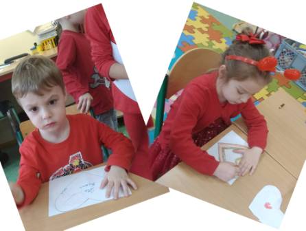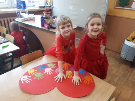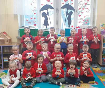 W młodszym oddziale przedszkolnym każde dziecko otrzymało słodką walentynkę od swoich pań. Dzieci okazywały sobie przyjaźń poprzez wzajemne wymienianie się serduszkami oraz nauczyły się układać dłonie w kształt serca.