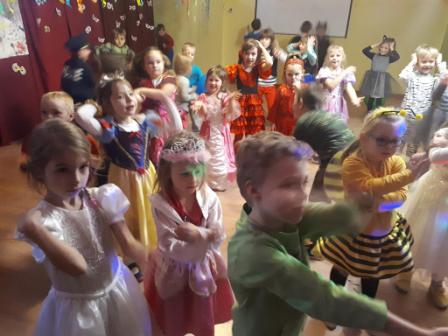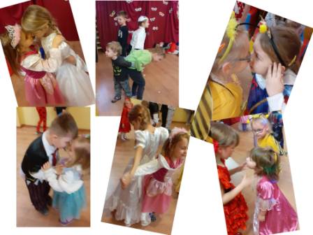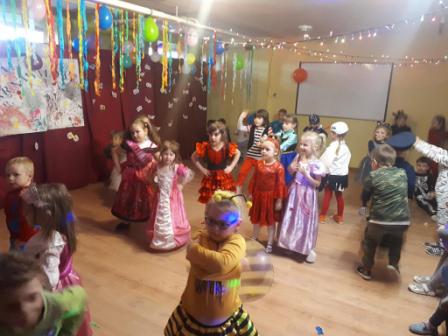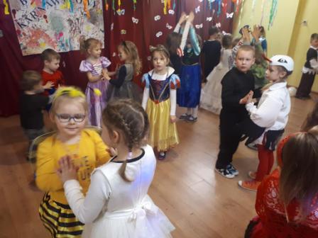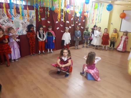 Tego dnia już od rana w obu oddziałach przedszkolnych pojawiały się kolorowe postacie. Dzieci przebrane były za bohaterów znanych bajek, w salach przedszkolnych można było spotkać wróżki, królewny, delikatne motylki, rycerzy, policjanta, Spider-Mana, pszczółkę ,… nie sposób zliczyć i wymienić tych wszystkich postaci. Rozpoznać dzieci było bardzo trudno.