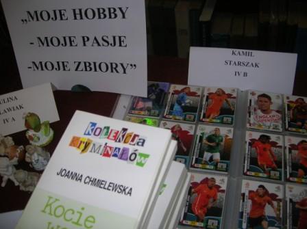 „Moje hobby – moja pasja – moje zbiory” to tytuł wystawki, jaką zorganizowałyśmy w bibliotece szkolnej. Uczniowie z poszczególnych klas przynieśli swoje zbiory, które kolekcjonują. Można było obejrzeć najróżniejsze eksponaty, począwszy od kapsli po Tymbarku po karty, gazety, znaczki, książki i figurki różnych zwierząt. Największą ilością pasjonatów pochwaliły się klasy IV a i IV b, bo aż 5 uczniów coś kolekcjonuje. Do kolekcjonerów dołączyli też wychowawcy niektórych klas. Swoje pasje zaprezentowały :panie Małgorzata Lewandowska i Małgorzata Stramel oraz pan Cezary Białczak.