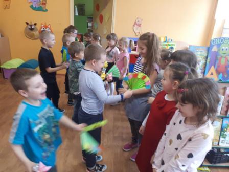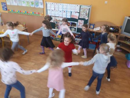 Wszyscy mali panowie tradycyjnie zaśpiewali swoim koleżankom oraz paniom uroczyste „100 lat”, a następnie wręczyli piękne prezenty. Tego dnia w przedszkolu panowała wesoła atmosfera. Było można usłyszeć taneczną muzykę, w rytm której bawiły się zarówno dziewczynki jak i chłopcy. Z dziewczęcych buź uśmiech nie schodził przez calutki dzień, a chłopcy zachowywali się jak prawdziwi dżentelmeni, byli przemili, uczynni i sympatyczni:).