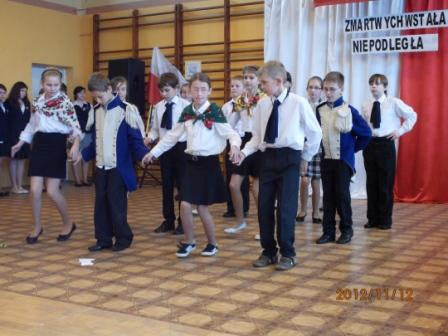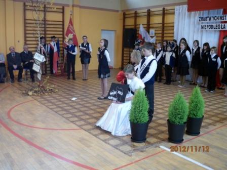 Uczniowie naszej szkoły mieli także możliwość zaprezentowania tego samego programu artystycznego podczas gminnych obchodów Święta Niepodległości, które odbyły się 9 listopada 2012 r. na sali widowiskowej w Wyrzysku.