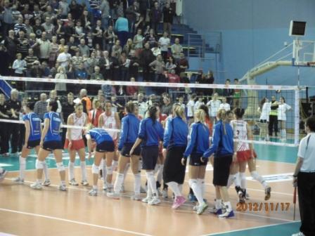 Po basenie pojechaliśmy na posiłek do KFC. Później najedzeni i zadowoleni udaliśmy się do hali sportowej na mecz ligi siatkówki kobiet rozgrywany pomiędzy drużynami PTPS Piła , a Bank BPS Muszynianka Fakro Muszyna. Mecz był bardzo emocjonujący. Zawodniczki z Piły sprawiły swoim kibicom niespodziankę, wygrywając całe spotkanie. Pilanki grały spokojnie, przeważając znacznie nad wyżej notowanymi przeciwniczkami. Widocznie własna hala i obecność dużej ilości sympatyków dodała zawodniczkom skrzydeł. Dodatkową atrakcją była transmisja spotkania na żywo w telewizji. Nasi znajomi w poniedziałek mówili nam, że widzieli nas w telewizji. Cieszyliśmy się z tego powodu. Mecz zakończył się wynikiem 3:1 dla drużyny z Piły.