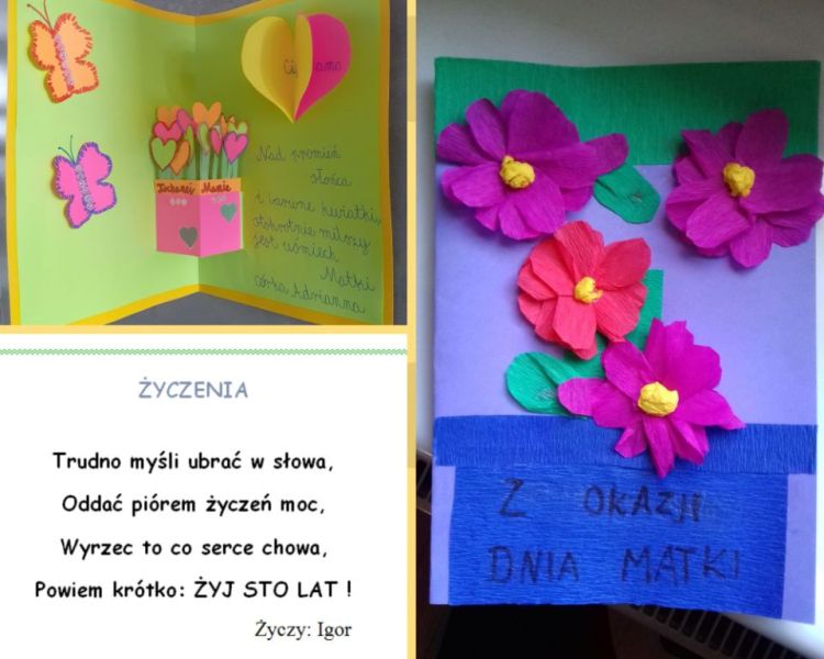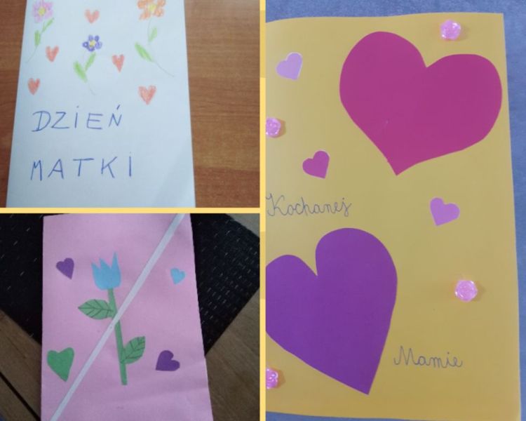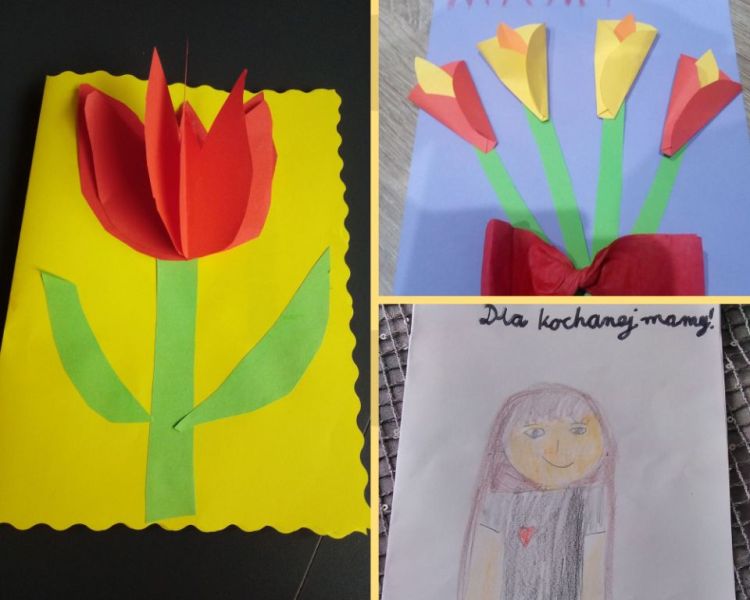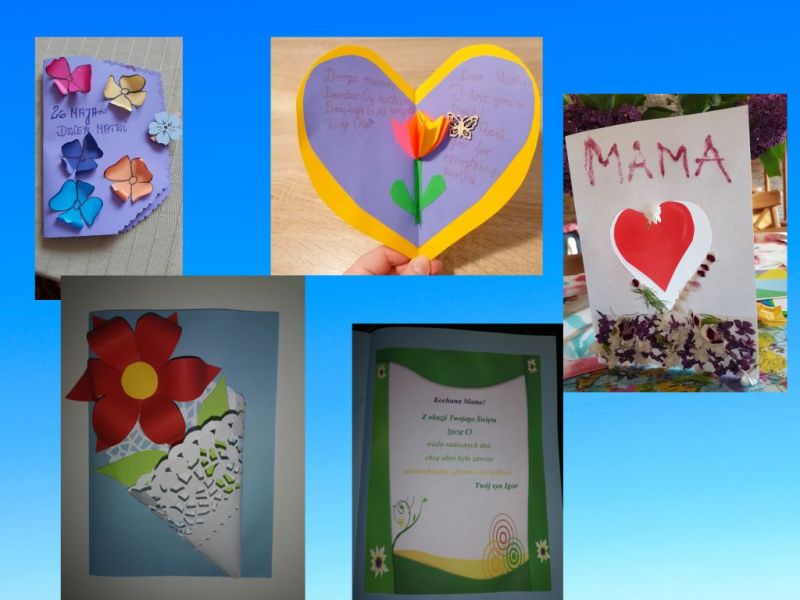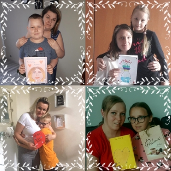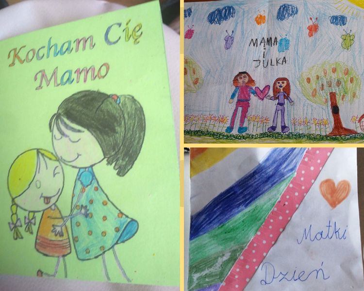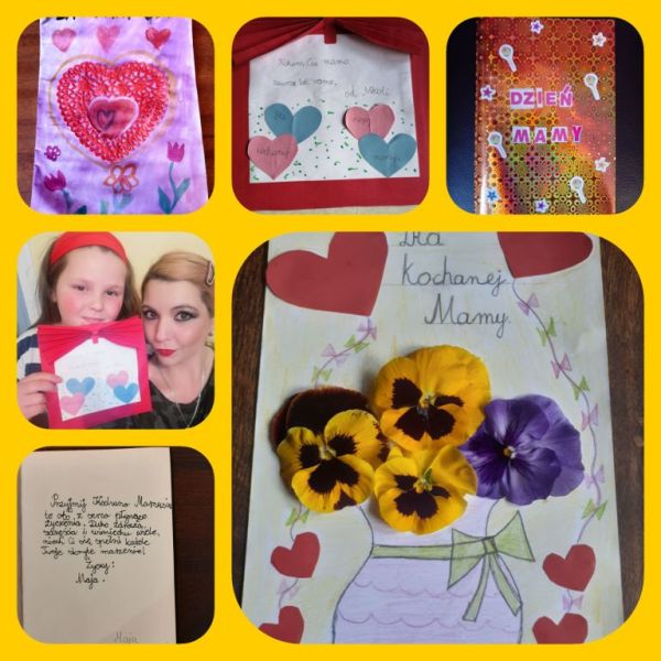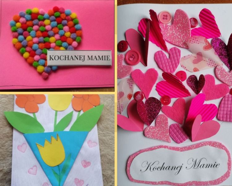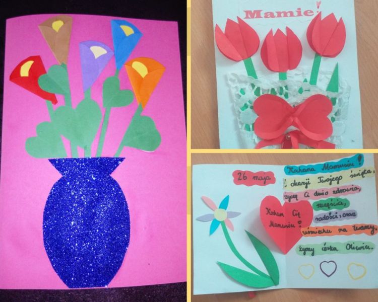 W czasie zdalnych lekcji uczniowie uczestniczyli w rozmowach na temat roli mamy w życiu dziecka oraz redagowali życzenia z okazji ich święta. Na zajęciach plastyczno – technicznych uczniowie wykonywali różnymi technikami piękne wielobarwne laurki. Wychowawczynie poszczególnych klas zebrały nadesłane prace i utworzyły piękne fotokolaże. Oto efekty ich pracy.