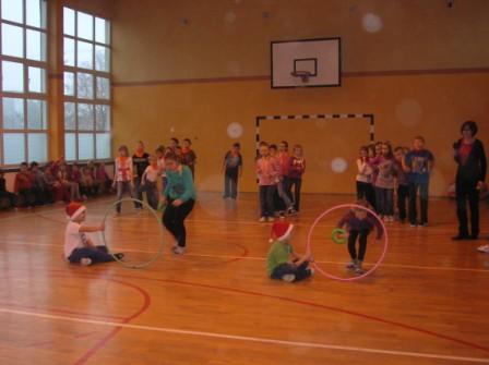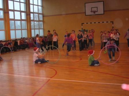 Tradycją naszej szkoły stały się "Mikołajkowe gry i zabawy na wesoło" organizowane w okresie Świąt Bożego Narodzenia, dlatego 19 grudnia nauczycielki Krystyna Kowalska i Jadwiga Strzyżewska zaprosiły do wspólnej zabawy dzieci z przedszkola oraz uczniów klas I -III. Zaproszeni goście razem ze starszymi kolegami i koleżankami brali udział w różnych konkurencjach sportowych. Była to okazja do integracji dzieci oraz spędzenia czasu w miłej i radosnej atmosferze przedświątecznej. Na zakończenie czekała na uczestników zabaw słodka niespodzianka.