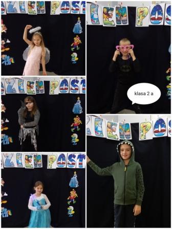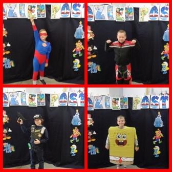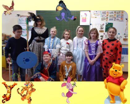 Mimo trudnej sytuacji w szkołach, nasza Pani Dyrektor Małgorzata Lewandowska, nauczycielki przedszkola i klas I-III oraz bibliotekarki postanowiły zorganizować Dzień Postaci z Bajek - święta wszystkich bajkowych postaci. Ten dzień jest okazją, aby przypomnieć sobie naszych ulubionych bajkowych bohaterów, którzy są nieodzownym elementem dzieciństwa. Bawią, uczą, pomagają poznać prawdę o świecie i życiu, oswajają dziecięce lęki, czasem stanowią wzór do naśladowania. W tym dniu chętne dzieci przebrały się za swoją ulubioną postać z bajki. Nie zabrakło więc: księżniczek, Myszki Miki, Czerwonego Kapturka, Królewny Śnieżki i wielu innych bajkowych postaci. Przedszkolaki oglądały fragmenty swoich ulubionych bajek oraz rysowały swoją ulubioną postać z bajki. Pierwszaki wysłuchały fragmentów bajek czytanych przez wychowawczynie, rozwiązywały zagadki i układały bajkowe puzzle. Dla klas drugich i trzecich Pani bibliotekarka Henryka Trojanowska-Białczak przygotowała do obejrzenia ciekawe bajki, natomiast wychowawczynie wspólnie ze swoimi uczniami zmagały się z krzyżówkami i rebusami. Do obchodów tego święta włączyły się klasy czwarte pod okiem polonistek: Małgorzaty Stramel i Joanny Lewandowskiej. Było kolorowo i radośnie.