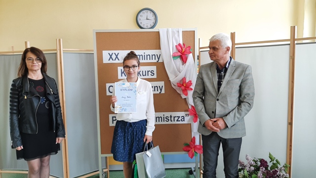 Oprócz finalistek, nagrodę z rąk wiceburmistrza Pana Jacka Wiśniewskiego oraz Pani dyrektor Szkoły Podstawowej im. Stanisława Staszica Małgorzaty Lewandowskiej, odebrała zwyciężczyni I etapu wśród klas IV Weronika Grochowska ze Szkoły Podstawowej w Falmierowie. Otrzymała ona tytuł Mistrzyni Ortografii Klas Czwartych Gminy Wyrzysk.