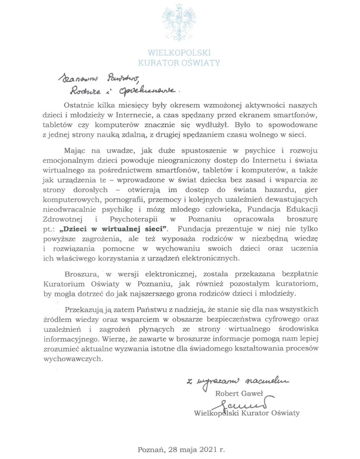 List Wielkopolskiego Kuratora Oświaty do Rodziców