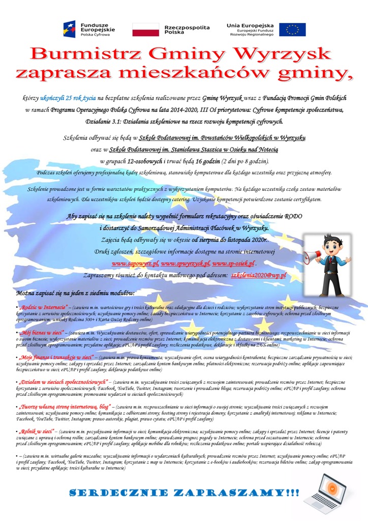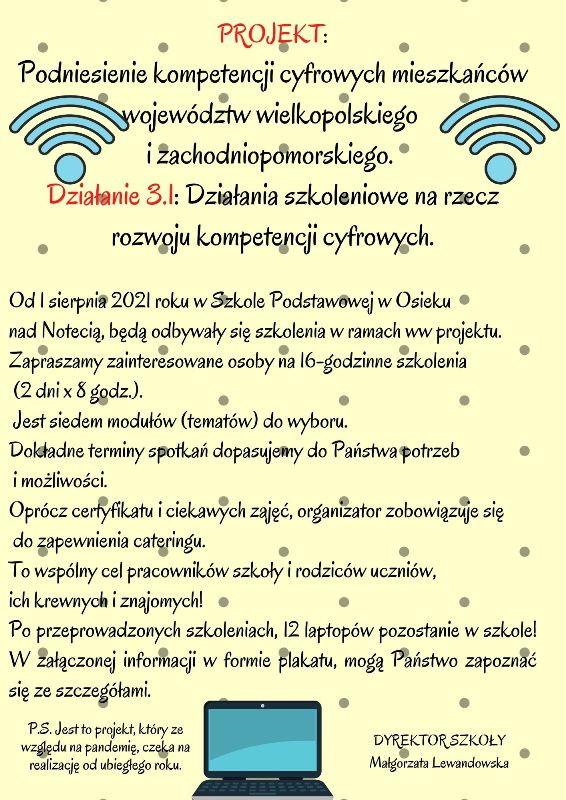 Działania szkoleniowe na rzecz rozwoju kompetencji cyfrowych.