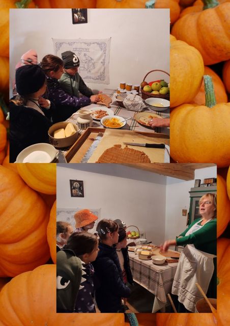 30 września 2021 r. uczniowie klasy III a wybrali się do Muzeum Kultury Ludowej w Osieku nad Notecią na warsztaty edukacyjne „Jesień w polu i zagrodzie”. Program zajęć był bardzo bogaty i związany z pracami jesiennymi na wsi. Zaprezentowane prace miały na celu pokazanie zwyczajów i obrzędów związanych z pracami gospodarskimi oraz domowymi w okresie jesiennym. Dzieci obserwowały omłoty cepami i czyszczenie ziarna, wykopki i sortowanie ziemniaków, wybieranie buraków i marchwi. Uczniowie brali również udział w smażeniu powideł, w produkcji syropu z buraków cukrowych, kiszeniu kapusty i wyrabianiu krówek. Zobaczyliśmy także pokaz pracy kowala oraz wyplatanie z pałki wodnej wycieraczek, kapeluszy, koszyków i wielu innych ciekawych przedmiotów. Dzieci oglądały prace z zainteresowaniem i bardzo chętnie brały w nich udział. Z wielkim zainteresowaniem zwiedziliśmy szkołę, gdzie każdy mógł spróbować pisania piórem i atramentem. W wiejskim sklepiku zakupiliśmy pyszne pajdy chleba z masłem i powidłami.