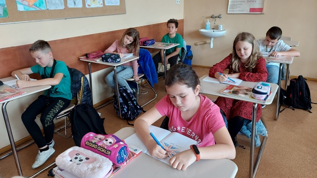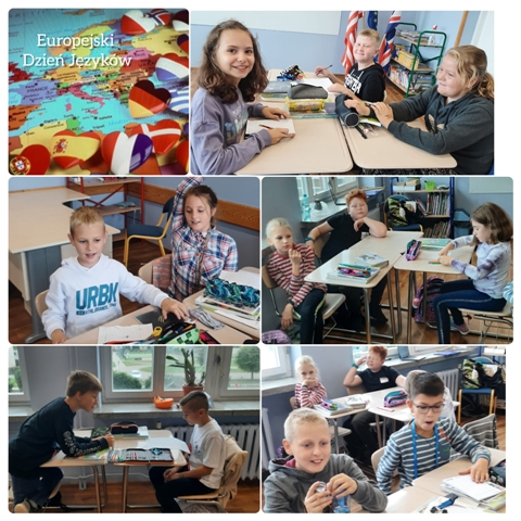 W jeszcze innych klasach, zadanie uczniów polegało na przypisaniu każdemu europejskiemu krajowi właściwy język urzędowy. Klasy młodsze poznały zwroty powitania i pożegnania w sześciu językach europejskich oraz przyporządkowywały właściwą flagę kraju. Natomiast grupa przedszkolna „Zerówka” bawiła się w tym dniu kolorując flagi państw języków, których uczą się uczniowie w naszej szkole.