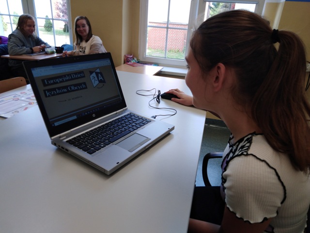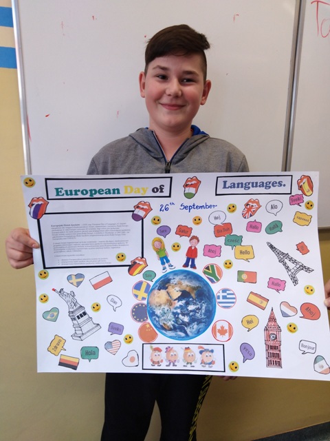 Na lekcjach języka angielskiego natomiast, wykonywali zadania nawiązujące do różnorodności językowej. Ćwiczyli się w łamańcach językowych, sprawdzali swoją znajomość popularnych słówek w różnych językach, wykonywali gry i zabawy językowe. Niektórzy przygotowali informacje o Europejskim Dniu Języków w formie notatek, plakatów, a także prezentacji multimedialnych.