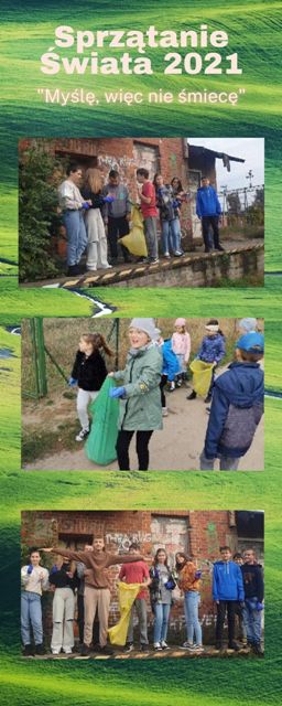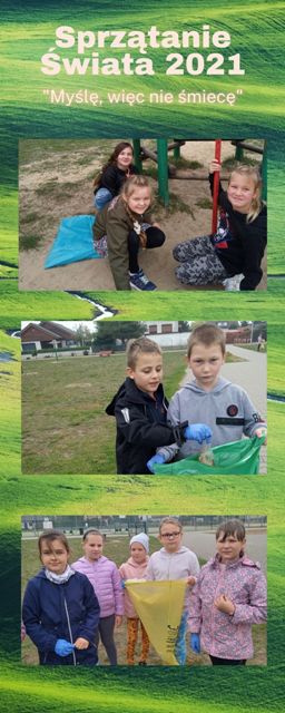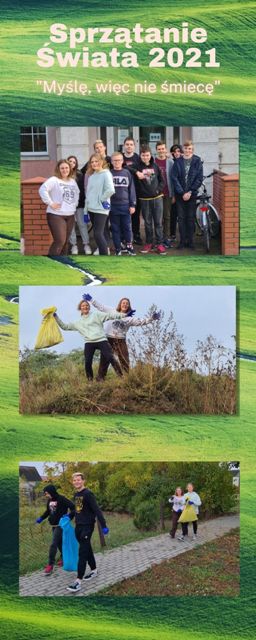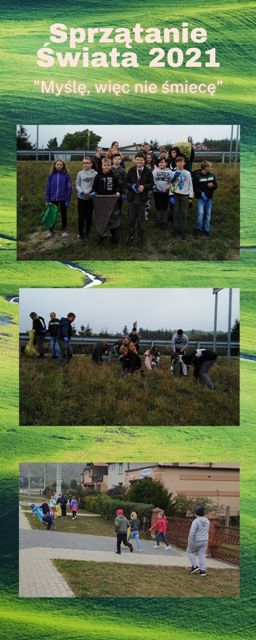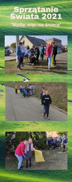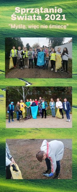 Tegoroczne hasło „Myślę, więc nie śmiecę’’ jest wspólną lekcją poszanowania środowiska. Piątego i szóstego października dzięki wielkiemu zaangażowaniu uczniów wszystkich klas nazbieraliśmy wiele worków pełnych odpadów. Tegoroczne działania uświadomiły uczniom, że wyrzucone lub porzucone szklane i plastikowe butelki, foliowe torby i opakowania po produktach spożywczych, stwarzają bezpośrednie zagrożenie dla naszego środowiska. Dzięki workom, które dostaliśmy od Urzędu Miejskiego w Wyrzysku mogliśmy na miejscu segregować zebrane śmieci.