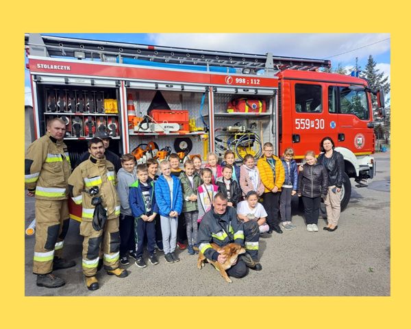Na początku października klasy trzecie odwiedziły siedzibę Ochotniczej Straży Pożarnej w Osieku nad Notecią. Na miejscu dzieci mogły oglądać samochody i sprzęt używany podczas pożarów oraz wypadków. Pan Sławomir Królak, który pełni funkcję Naczelnika OSP, w bardzo ciekawy sposób opowiedział o trudnej i odpowiedzialnej pracy strażaków, którzy zawsze chętnie niosą pomoc osobom poszkodowanym. Uczniowie zobaczyli także różne pomieszczenia remizy, w których znajdują się m.in. mundury ubierane podczas akcji strażackich oraz salkę z pamiątkami i pucharami. Dzieci przypomniały sobie numery alarmowe oraz zasady wzywania pomocy. Największą atrakcją była możliwość wejścia do wozu strażackiego.
