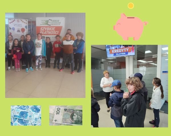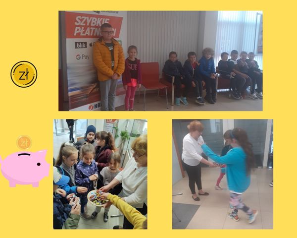Uczniowie klas trzecich udali się także z wizytą do Nadnoteckiego Banku Spółdzielczego, żeby zobaczyć na czym polega praca bankowca. Była to lekcja z cyklu „Uczymy się oszczędzać”. Przedstawiciel NBS, pani Katarzyna Domalewska przekazała dzieciom wiele informacji na temat zasad funkcjonowania banku. Uczniowie dowiedzieli się również, gdzie produkuje się pieniądze oraz zobaczyli próbki złota. Dzieci zadawały pytania dotyczące pracy bankowca i oszczędzania. Było to ciekawe i pouczające doświadczenie, gdyż miało na celu zachęcenie do mądrego gospodarowania pieniędzmi od najmłodszych lat.