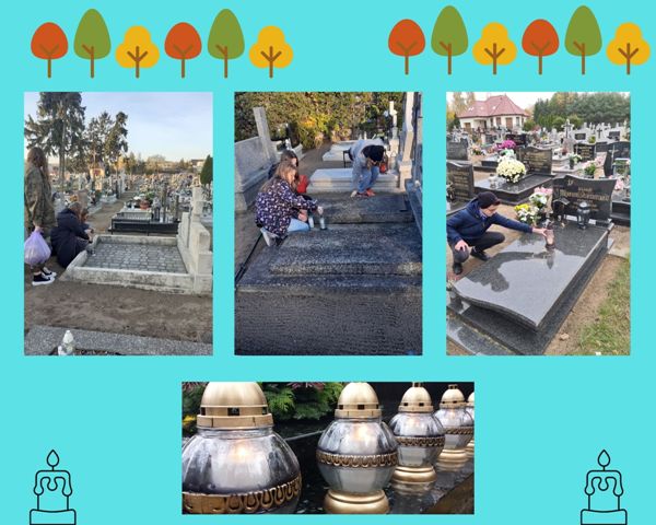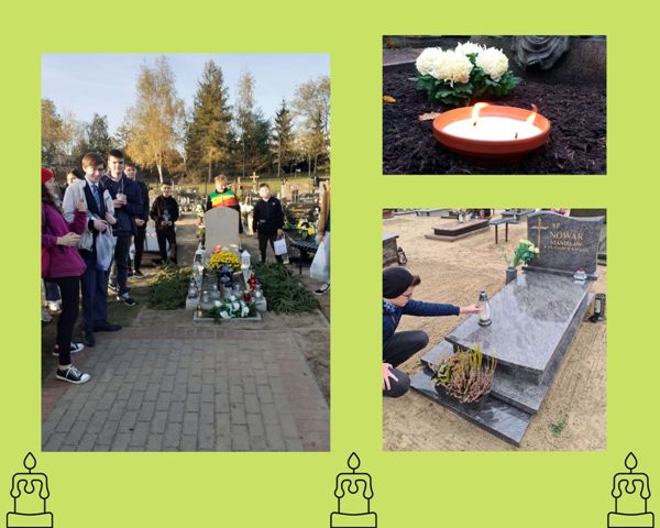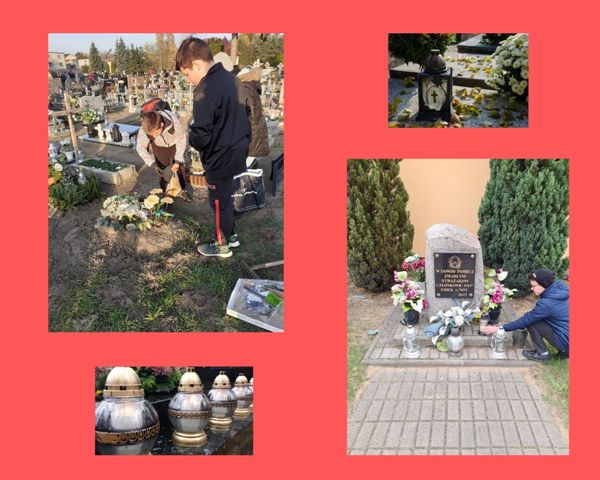 Tego dnia członkowie Szkolnego Koła Wolontariatu realizowali różnorodne działania upamiętniające: porządkowali opuszczone groby, zapalili znicze na wielu płytach nagrobnych oraz wspominali osoby ważne dla naszej wspólnoty. Uczniowie byli także przy obelisku poświęconym pamięci XV Pułku Ułanów Wielkopolskich i poznali związaną z nim historię.