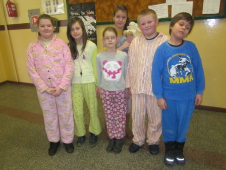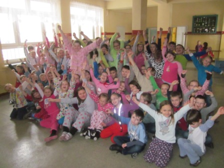 To nie był żart! Uczniowie naszej szkoły przyszli w piątek 22 lutego 2013 do szkoły W PIŻAMACH! Oczywiście, kto chciał. W nagrodę za odwagę, uczniowie ci byli zwolnieni z pytania.