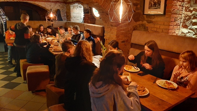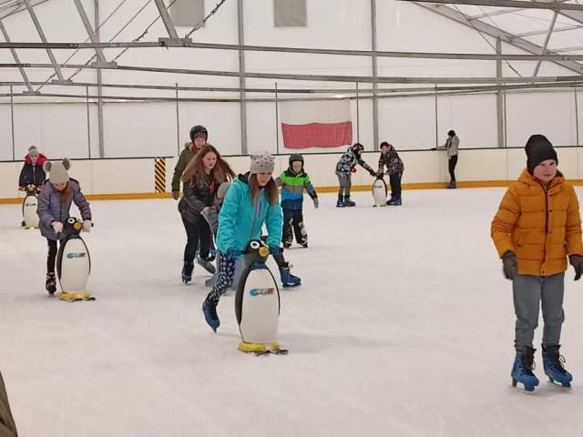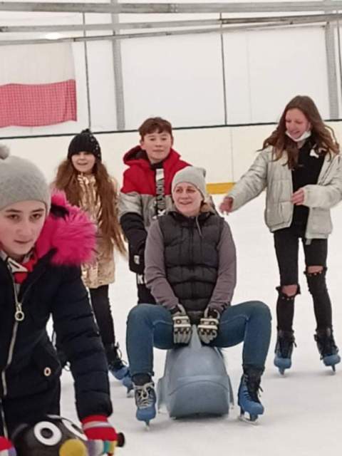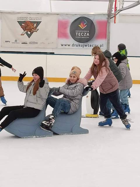 Pierwszą z atrakcji była wizyta na szamocińskim lodowisku. Niektórzy z nas po raz pierwszy ubrali łyżwy, inni szkolili swoje umiejętności, a pozostali, niczym zawodowcy zaprezentowali łyżwiarski talent. Po dniu pełnym wrażeń zjedliśmy pyszny obiad w restauracji „Jutrzenka” w Białośliwiu. Okazało się, że właściciel restauracji miał dla uczestników wycieczki niespodziankę - mogliśmy bez limitu korzystać ze stołu bilardowego, piłkarzyków stołowych oraz z rzutek elektronicznych. Dla wielu była to nie lada gratka!