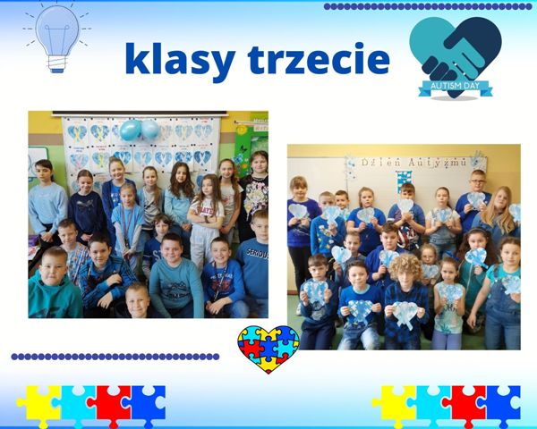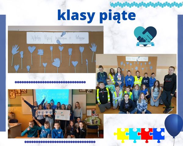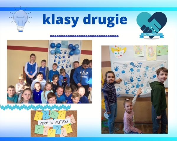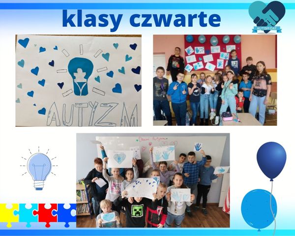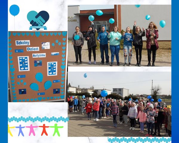 Tego dnia podczas godziny wychowawczej uczniowie oglądali prezentacje multimedialne, dyskutowali na temat zaburzenia oraz akceptacji i zrozumienia dla osób nim dotkniętych. Dzieci wykonywały również prace plastyczne, plakaty i gazetki klasowe związane z tematyką Dnia Autyzmu. Symbolem solidarności z „autystami” jest kolor niebieski. Powstało więc mnóstwo niebieskich serc, dłoni, żarówek, a także rozmaite afisze pokazujące kreatywność i zaangażowanie naszych uczniów oraz wychowawców. Ostatnim punktem obchodów Dnia Autyzmu był „Spacer na niebiesko” na boisku naszej szkoły, podczas którego niebieskie balony poszybowały w niebo. W ten sposób daliśmy znak społeczeństwu, że rozumiemy, akceptujemy i jednoczymy się z osobami z autyzmem.