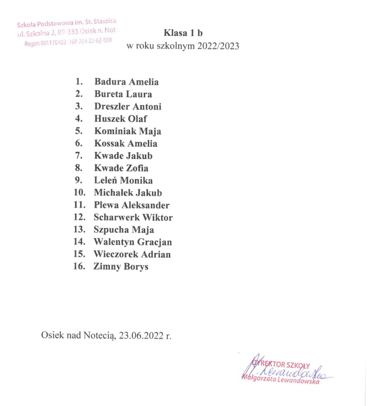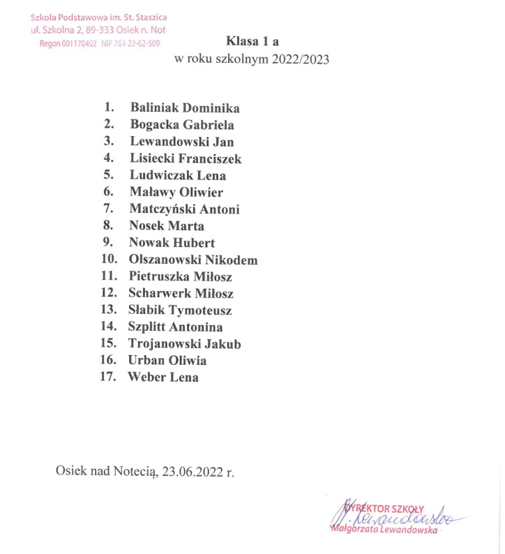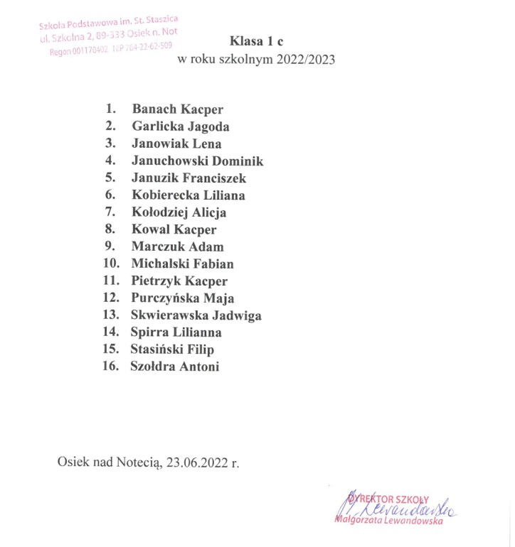 Poniżej przedstawiamy Państwu listy przynależności uczniów do poszczególnych klas