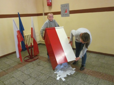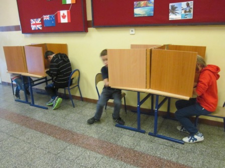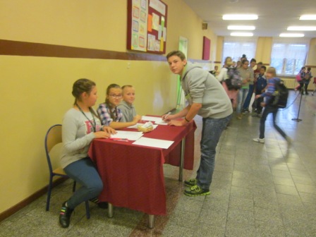 W piątek 18 października 2013 w Naszej szkole odbyły się wybory do Samorządu Uczniowskiego i Pocztu Sztandarowego. Nad poprawnym przebiegiem głosowania czuwała komisja wyborcza, składająca się z gospodarzy klasy IVa, Va i VIa. Staraliśmy się, by procedura wyborów była bardzo podobna do „prawdziwych” wyborów. Uczniowie mogli dokonywać wyboru swoich kandydatów w odpowiednio do tego przygotowanych „boxach”, któe zachowywały intymność decyzji. Po zaznaczeniu odpowiednich kandydatów, wyborca wrzucał swój głos do specjalnie przygotowanej urny wyborczej. Oprócz uczniów klas IV, V i VI, w głosowaniu brali udział również niektórzy nauczyciele.