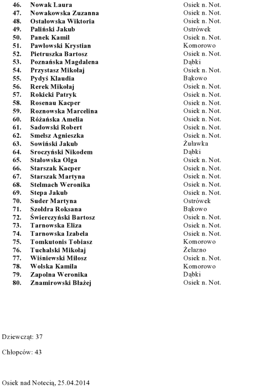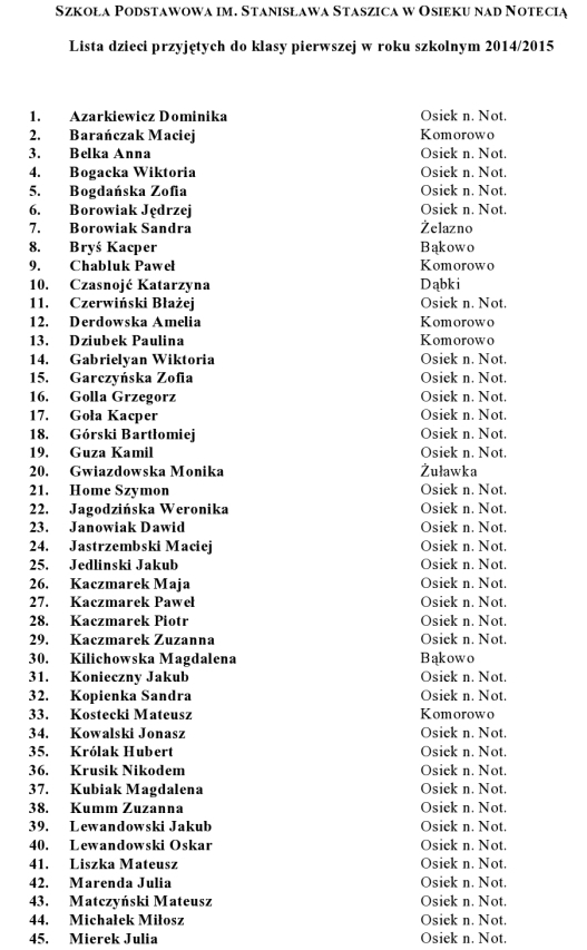Lista dzieci przyjętych do klasy pierwszej