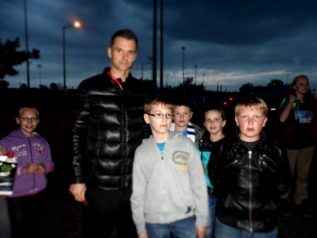 Największa niespodzianka spotkała uczestników wycieczki przed samym wyjazdem z parkingu. Okazało się, że przy autokarze znajduje się jeden z liderów piłkarzy Zawiszy Bydgoszcz – Piotr Petasz. I jak to bywa ze znanymi osobistościami, również i pan Piotr natychmiast został oblężony przez wszystkich osieckich uczniów. Każdy kto chciał, mógł osobiście zrobić sobie z nim zdjęcie i dostać kolejny autograf. Spotkanie to zostało również uwiecznione na wspólnej fotografii, na którą zgodził się sympatyczny piłkarz. Na koniec uczniowie serdecznie podziękowali panu Piotrowi, a on odwzajemnił się również swoim fanom, życząc wszystkim bezpiecznego powrotu do domu.