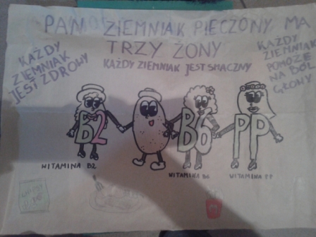 W środę 22 października swoje święto miał „ZIEMNIAK”. Przygotowania do obchodów rozpoczęto już dwa tygodnie wcześniej. Uczniowie klas I-III mieli wykonać prace plastyczną wykonaną techniką stempla, a uczniowie klas I-IV plakat z hasłem reklamowym. Wszystkie zgłoszone prace stanowiły dekorację Sali gimnastycznej.