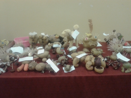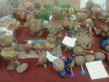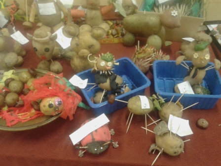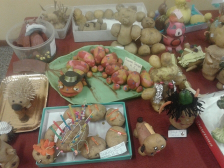 Na korytarzu szkoły można było podziwiać prace z kartofli. A było co podziwiać, zresztą zobaczcie sami. Oto one