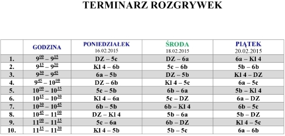 Terminarz rozgrywek turnieju piłki nożnej