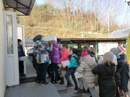 Czwarty raz włączyliśmy się do akcji „Pomożemy zimą nakarmić Burka i Kicię”, organizowanej przez bydgoskie schronisko dla zwierząt. Tak, jak bywało i w latach poprzednich, w czasie ferii, a dokładnie 17 lutego, wszyscy chętni uczniowie naszej szkoły wraz z opiekunami, wybrali się do Bydgoszczy, by osobiście przekazać dary podopiecznym schroniska. Naszą wycieczkę rozpoczęliśmy od wizyty w kinie Cinema City. Tam obejrzeliśmy film „Tajemnice lasu”. Po seansie filmowym, trochę czasu wolnego, by zjeść obiad i zrobić drobne zakupy i wreszcie wizyta w schronisku.