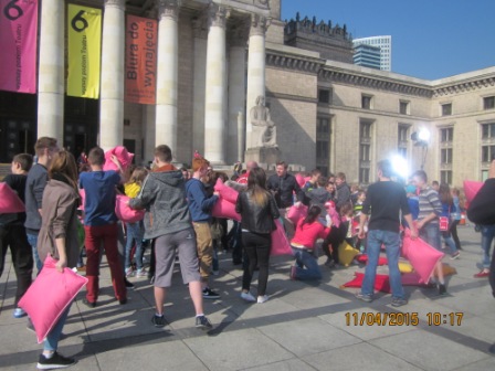 Trzeci dzień rozpoczęliśmy od wjazdu na 30-te piętro Pałacu Kultury, by obejrzeć panoramę stolicy. Jednak i dziś czekała nas miła niespodzianka. Przed Pałacem Kultury spotkaliśmy dziennikarzy z programu Dzień Dobry TVN, m.in. Filipa Chajzera, którzy zaproponowali nam wzięcie udziału w programie „walka na poduchy” - nie odmówiliśmy. Zabawa była przednia, no i rodzice mogli zobaczyć nas w telewizji. To ci fart!