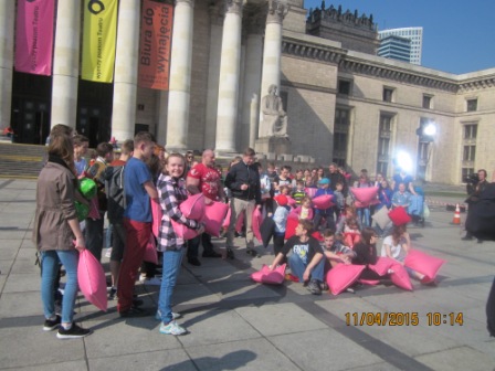 Bartek Olszewski też o Pałacu Kultury: „Gdy byliśmy u góry mogliśmy podziwiać jakże piękną panoramę naszej stolicy. Z każdej strony była tablica z nazwami budynków znajdujących się przed nami. Były tam kraty, przez które wyglądaliśmy. Przy każdej z nich było urządzenie, do którego wrzuca się pieniążek i możesz zobaczyć „zakamarki” Warszawy. Można było również kupić zabytkowe monety. Gdy wyszliśmy na zewnątrz czekała na nas „niespodzianka” . Akurat wtedy TVN nagrywał na żywo walkę na poduchy. Oczywiści zostaliśmy na niej. Była jeszcze druga część lecz my musieliśmy już jechać , gdyż byliśmy umówieni na zwiedzanie Zamku Królewskiego. Wspomnienia z wycieczki do naszej stolicy na bardzo długo zostaną mi w pamięci”.