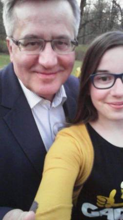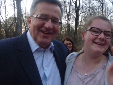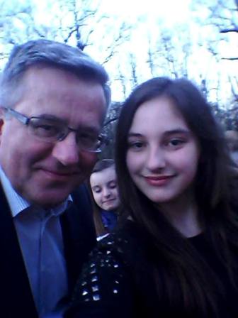 Weronika Magierska również o spotkaniu Prezydenta: „gdy zwiedzaliśmy Łazienki Królewskie spotkaliśmy kogoś niesamowitego. Na początku wszyscy nie mogli uwierzyć,ale jednak. Spotkaliśmy...Prezydenta Bronisława Komorowskiego wraz z małżonką podczas spaceru w Łazienkach! Klasa 6A i 6B była z tego dnia najbardziej zadowolona, ponieważ dzięki temu spotkaniu nieliczni ( w tym ja!!!) mają tzw."selfie" z B. Komorowskim”.